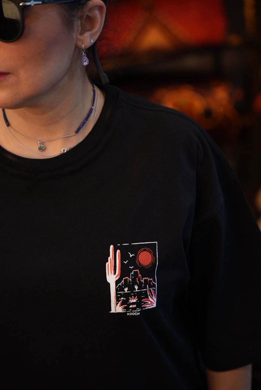 تیشرت-DESERT-مشکیتیشرت کوچ طرح DESERT مشکی تهیه شده از پارچه های نخ پنبه چاپ ماندگار سایزبندی مناسب آقایان و خانم ها برای انتخاب سایز حتما به جدول سایزبندی توجه فرمایید