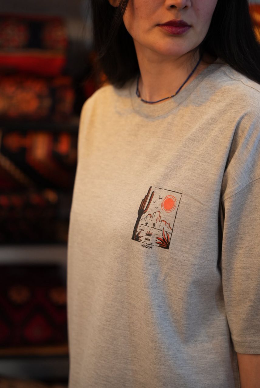 تیشرت-DESERT-ملانژتیشرت کوچ طرح DESERT ملانژ تهیه شده از پارچه های نخ پنبه چاپ ماندگار سایزبندی مناسب آقایان و خانم ها برای انتخاب سایز حتما به جدول سایزبندی توجه فرمایید